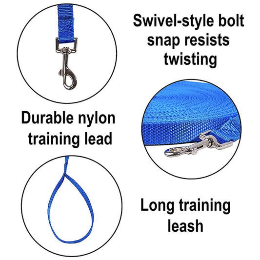 Long Dog Leash Obedience Recall Training Agility Lead - 15Ft 20Ft 30Ft 50Ft 100Ft Training Leash - Great for Training, Play, Camping, or Backyard - Blue 20Ft